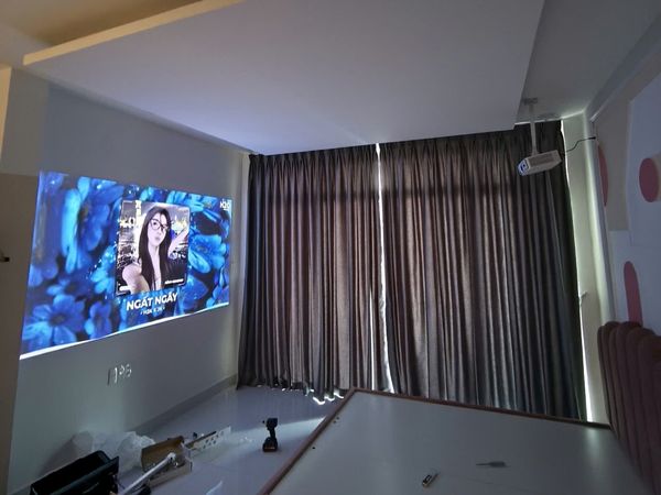 Xview Xcine4 Pro2 được gắn lên trần nhà và chiếu lên tường đối diện